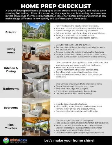 Sellers want to make their home look it's best for photos and showings, but sometimes they don't know exactly how (or just need a gentle reminder!). Help them make each area of their home look it's best with this easy-to-follow checklist. Email the PDF or (even better) print and hand it to them!